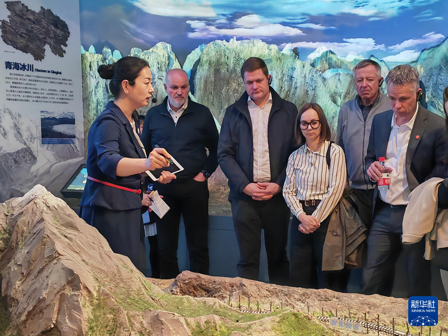 4月3日,奥地利中国友好协会高级代表团正在参观青海省自然资源博物馆。新华社记者 王梓涵 摄