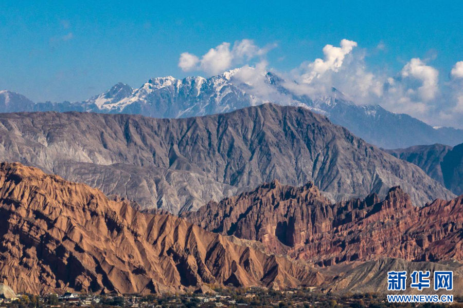 在青海省海南藏族自治州贵德县境内拍摄的丹霞地貌(无人机照片)。(新华社记者 张龙 摄)